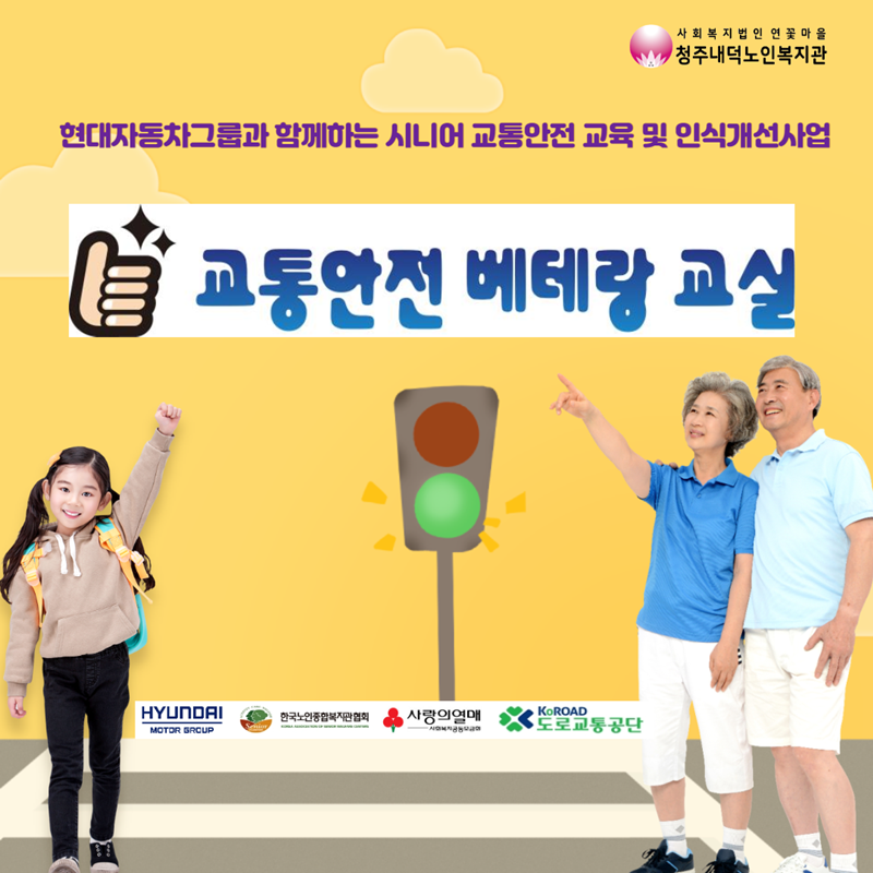 청주내덕노인복지관에서는 어르신들의 교통안전사고율 감소와 인식개선을 위해 교통안전 베테랑 교실을 운영합니다. 이달부터 사전 모집된 20명의 어르신과 비대면 영상교육을 통해 교통법규와 교통사고 사례를 살펴보고, 보행자와 운전자로서 주의할 점에 대해 배우게 됩니다. 교육수료 후에는 지역사회 시민을 대상으로 인식개선 캠페인을 펼칠 예정입니다. 우리 모두의 안전을 위해 교통법규 함께 준수해요!