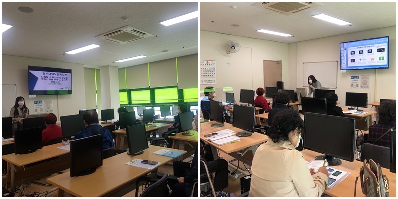 4월 13일(화), 4월 15일(목) 디지털 소외노인의 정보화 역량 강화를 위한 서포터즈 양성교육 '스마트 학당' 개강식을 시작으로 스마트폰 교육을 실시 하였습니다! 스마트 학당은 청주시에서 지원하며 4월~10월까지 스마트폰 교육, 서포터즈 교육, 스마트폰 과의존 예방교육, 수료식 및 최종 평가회 등의 내용으로 진행됩니다 본 사업은 총 20명 참여자를 대상으로 사회적 거리두기 지침을 준수하여 10명씩 분반하여 운영합니다 올해 세부 교육과정을 거쳐 차년도에는 스마트폰 전문 자원봉사단으로 활동 할 예정이니 참여자 분들의 적극적인 참여 바랍니다.