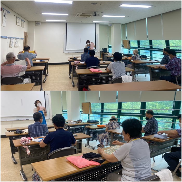 매주 금요일 오전 10시 복지관 2층 으뜸방에서 슬기로운 부부생활 정리수납 교실 '함께해 홈즈'가 실시되었습니다. 봉미경 강사님의 실습형 강의로 2회차가 진행되었습니다. 냉장고 정리법, 의류 정리법 등 어르신들이 실생활에서 간편하게 정리할 수 있는 방법을 소개시켜드렸는데요. 지금까지 제대로 된 정리수납법을 알지 못하신 참여자들이 너무 좋은 정보라고 좋아하셨습니다. 앞으로 남은 3회기동안에도 무더운 더위에도 참석하신 참여자들이 정리마법사가 될 수 있도록 더욱 좋은 정보를 준비하여 찾아뵙도록 하겠습니다!