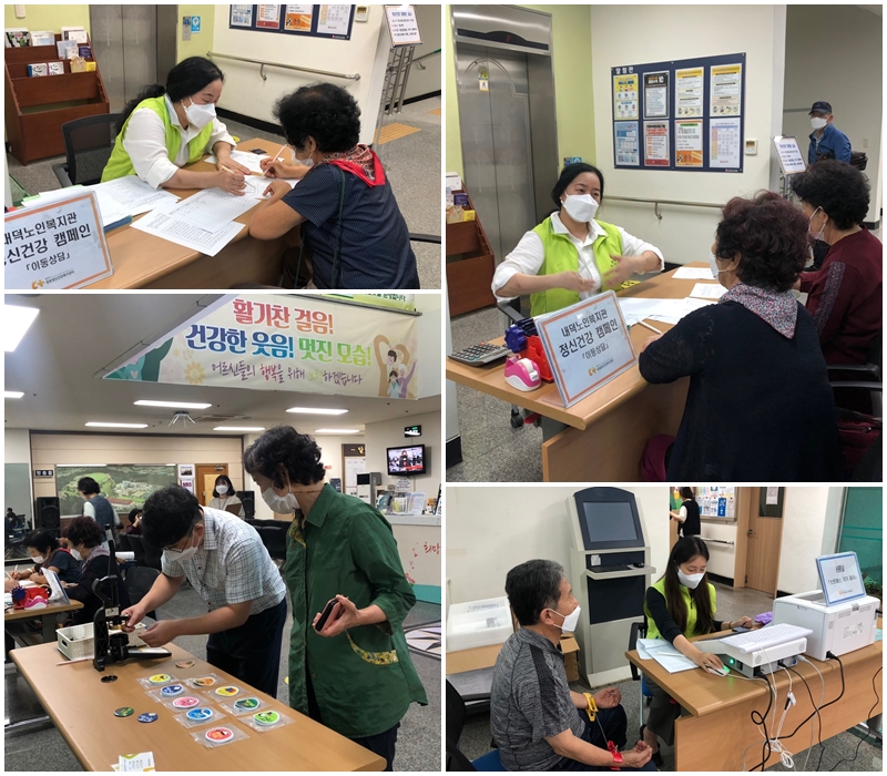 지난 29일 9시30분부터 2시간 동안 정신건강 캠페인 활동을 실시 하였습니다. 청원정신건강복지센터 지원으로 정신건강 상담, HRV 심박변이도 기기 검사(스트레스 측정), 손거울 만들기, 폴라로이드 사진 촬영을 진행 하였습니다 김O이 어르신(여, 74세)은 정신이 건강해야 몸도 건강한 것 같다, 직접 상담을 받아보고 검사도 해보니까 좋았다는 긍정적인 반응 이였습니다 정신건강 및 체험을 통해 정신질환에 대한 부정적인 인식 제고에 도움이 되었길 바랍니다. 본 캠페인은 총 3회기로 실시하며 2차는 10월 8일(금) , 3차는 11월 8일(월) 9시 30분에 진행하니 많은 관심과 참여 바랍니다.