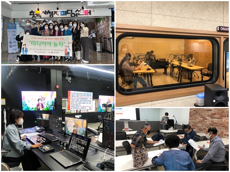 스마트시니어스쿨 2반은 10월 13일(수) 10시부터 12시까지 미디어 체험을 실시 하였습니다 미디어 체험은 충북시청자미디어센터(문화제조창 5층)에서 진행 하였으며, 어르신들과 대학생 SNS 서포터즈가 라디오 작가, DJ, 게스트 역할과 앵커, 기자, 기상캐스터 역할 등 라디오 및 뉴스 체험하는 시간을 가졌습니다. 참여한 모든 어르신들은 생소한 듯 보였으나 적극적으로 활동하는 모습을 보여주었습니다 이번 미디어 체험을 통해서 미디어 격차 해소에 도움이 되었길 바랍니다.