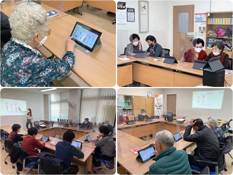 금일 저희 복지관에서는 10:00~11:00 1층 상담실에서 치매예방교실 ‘영(young)리한 두뇌찾기’ 11회기가 진행되었습니다! 이번에도 치매예방체조와 더불어 ˚웹-코트 프로그램을 활용하여 어르신의 인지 활동을 강화할 수 있는 활동 등을 하였습니다. 이번에는 웹코트의 청춘코스(1세트~3세트)를 진행하였으며 계절에 맞는 물건, 음식 나열해보기와 도형 맞추기 등 기억력과 지남력, 문제해결능력에 도움을 주는 다양한 내용으로 구성된 프로그램을 시행하였습니다. 처음 진행되는 청춘코스의 내용에 어려움을 겪는 어르신들이 계셨지만, 문제가 거듭될수록 잘 적응하여 준비된 문제를 모두 풀 수 있었습니다. 남은 회기도 웹코트 프로그램에 잘 적응할 수 있도록 반복적인 학습으로 프로그램 참여가 원활하게 이루어지도록 하겠습니다. 참여해주신 어르신들 모두 감사드립니다~!