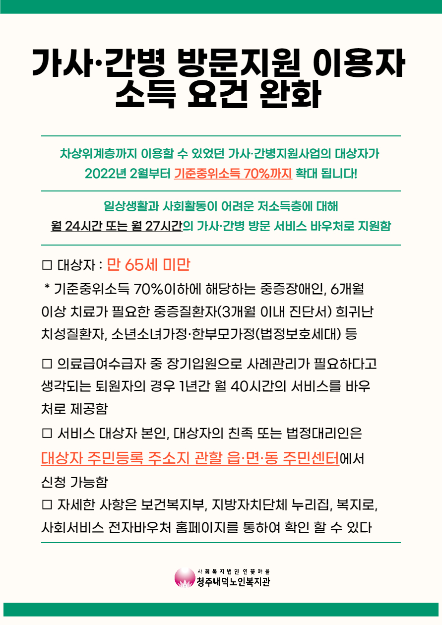 | [복지정보 #3월] 가사·간병 방문지원 이용자 소득요건 완화 | |||