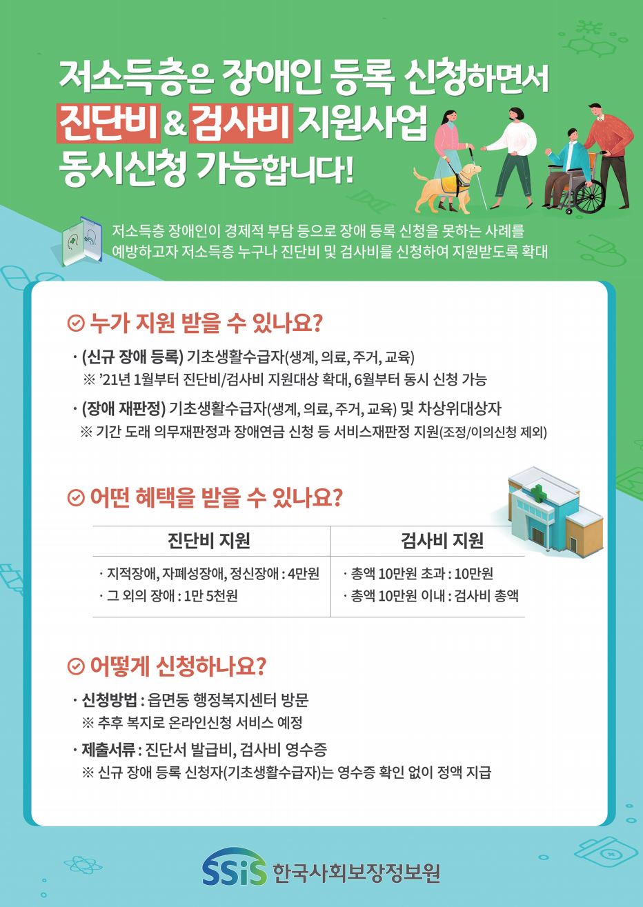 | [복지정보 #3월] 저소득층, 장애인 등록신청 및 진단비&검사비 지원 | |||