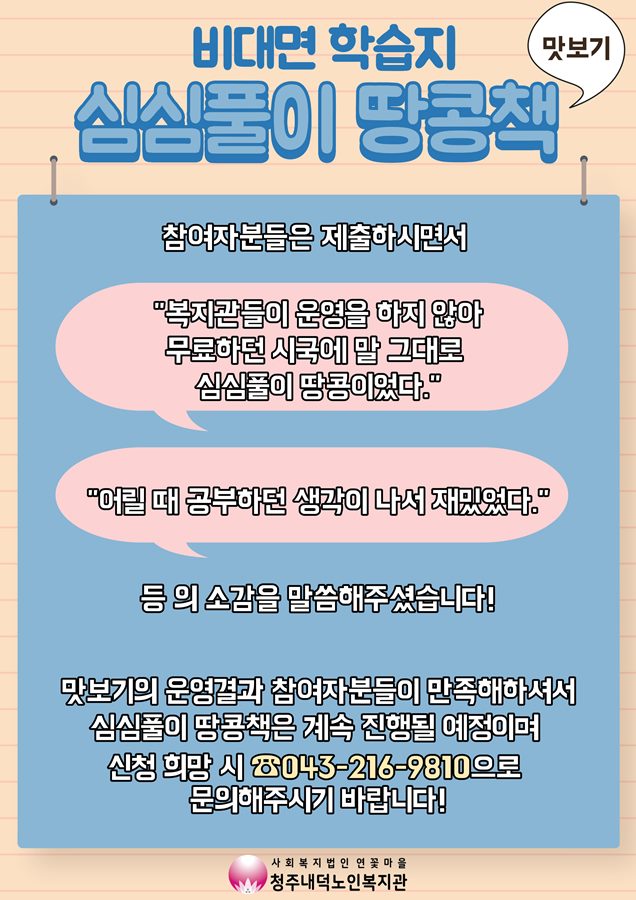 늘벗골이야기 > 복지관소식 - 비대면 학습지 심심풀이 땅콩책 맛보기 운영