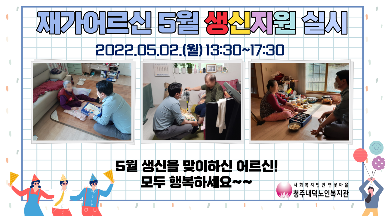 청주내덕노인복지관에서는 5월 재가어르신 생신지원을 실시하였습니다!