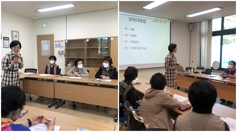 5월 16일(월) 선배시민 너나들이 봉사단은 소양교육을 실시 하였습니다 동년배 상담 전문가로 거듭나기 위하여 노인의 욕구 이해하는 법과 상담사의 기본적인 태도에 대해 알아보았습니다 효과적인 의사소통을 위한 대화법 습득을 위한 말과 대화의 다른점, 이중메세지에 대해서도 집어 보는 시간을 가졌습니다 또한 참여자들간의 상담자와 피상담자로 역할을 나누어 상담 실습을 진행해보고 소감을 나누는 시간이 되었습니다 보람찬 교육이 되었길 바랍니다. |