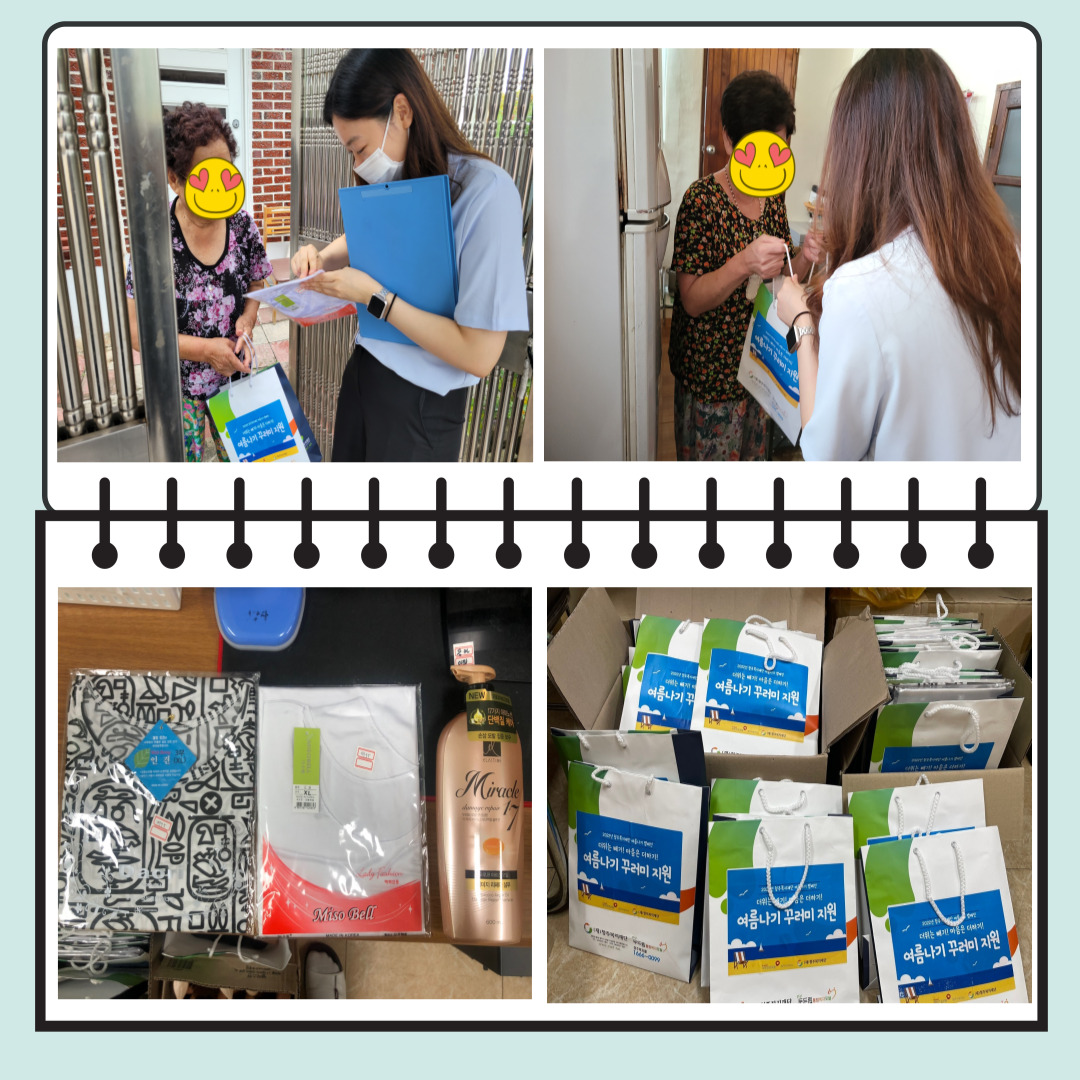 저희 복지관에서는 금일 14:00~17:00, 국민건강보험공단 청주서부지사의 기부를 통해 청주복지재단에서 여름맞이 여름용 내의를 후원해 주셔서, 여름철 주거환경과 건강상태를 고려하여 총 23명의 어르신들에게 지원을 실시하였습니다.