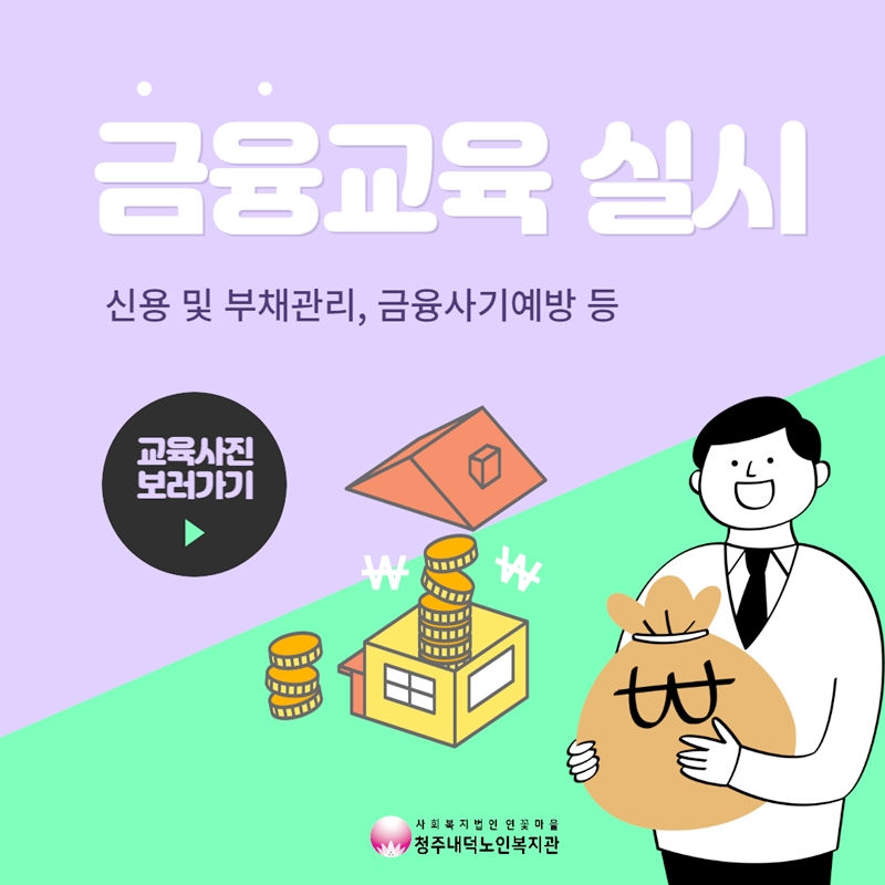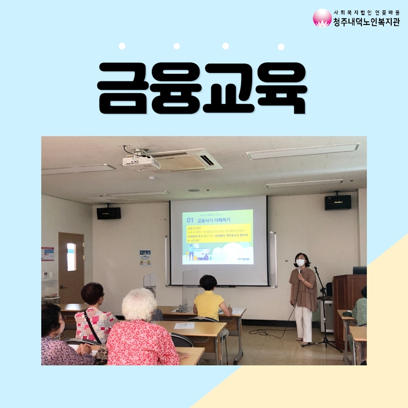 서민금융진흥원 이혜영 강사 지원으로 진행 되었습니다. 노후에 대한 이해, 생활비 부족자금 충당 방법, 자산부채 및 신용도 확인하기, 금융사기에 대한 이해, 개인정보의 중요성 등과 관련된 내용으로 진행 되었으며 참여자분들의 평소 궁금했던 부분에 대해 해소해 드릴 수 있는 시간이 되어 어르신들의 참여도 및 만족도가 매우 높았습니다~! 본 기관에서는 어르신들의 전문 상담(교육) 기회를 통해 정보제공을 지속적으로 실시 하고자 하오니 향후 교육에도 많은 관심과 참여! 바랍니다