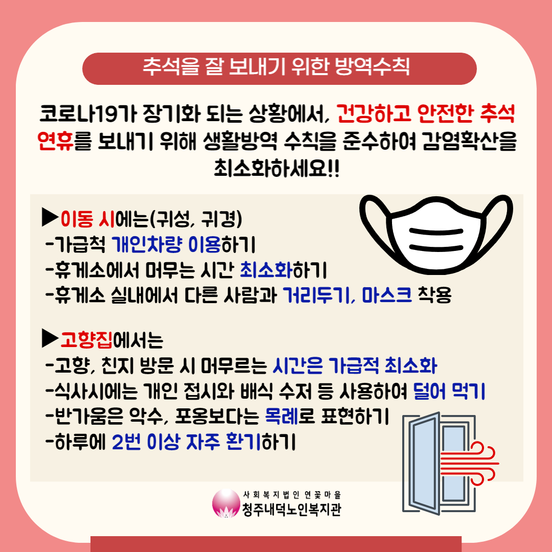 추가로 추석을 잘 보내기 위한 방역수칙도 있으니, 잘 준수하여 건강한 추석을 보내세요!!