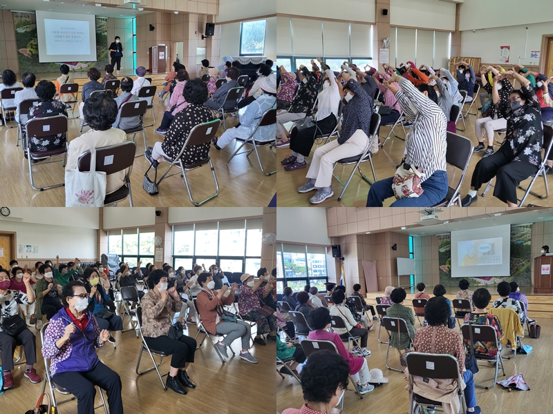 노인일자리 활동을 하는 데 있어서 ‘동료 참여자와의 원활한 관계’가 무척 중요하기에 참여자분들 모두 괴롭힘 방지 수칙 등에 대하여 주의 깊은 자세로 경청해주셨습니다. 또한, 과거와는 성에 대한 인식이나 정서가 달라짐에 따라 참여자 어르신들이 보육시설에서 활동하시며 활동 전후 안전사고를 예방하기 위한 가벼운 스트레칭을 통해 참여자분들이 다시 한번 안전사고 예방의 중요성을 깨달을 수 있도록 교육을 진행하였습니다.