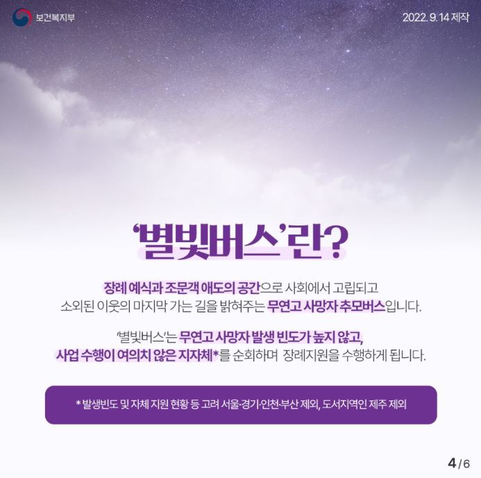 | 10월 복지정보 - 무연고 사망자 장례지원사업 [별빛버스] 운영 | |||