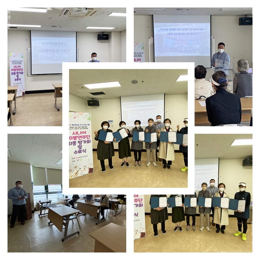 | 평생학습우수프로그램지원사업 시니어따봉연주단 최종평가회 및 수료식 | |||