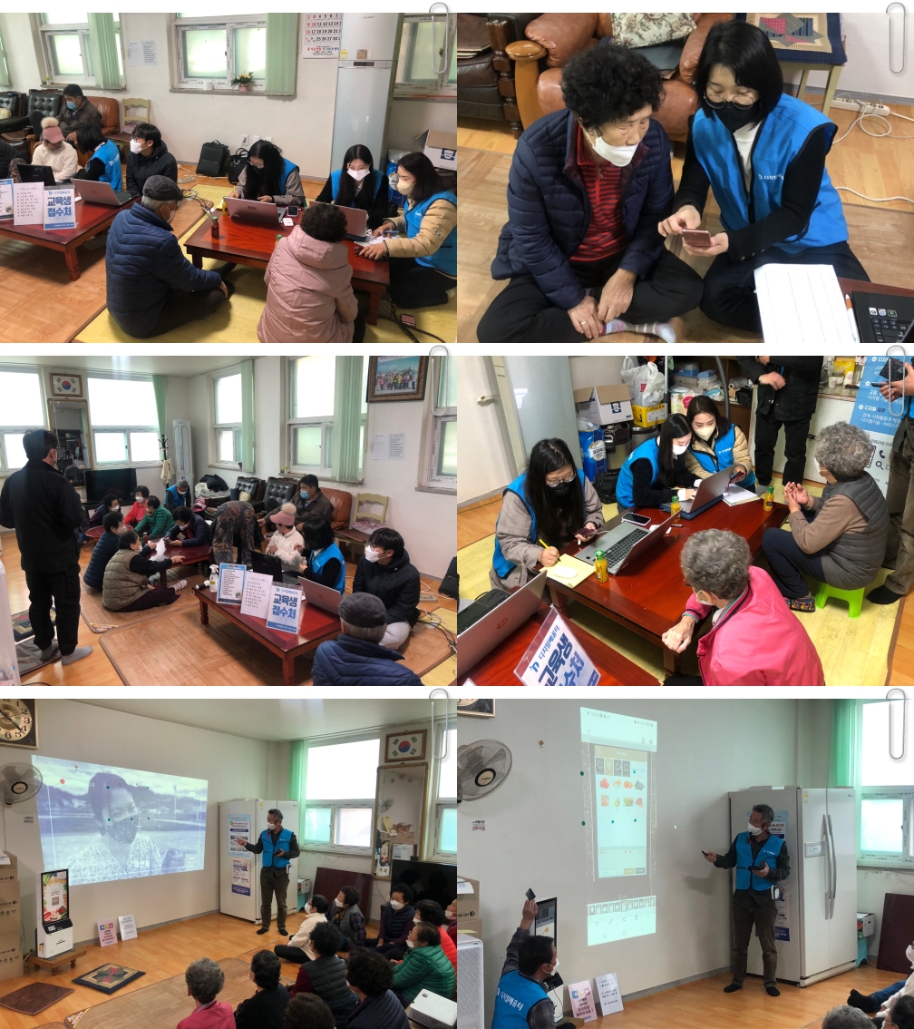 저희복지관에서는 금일 10:00~12:00 까지 내수삼일아파트 경로당에서 우리동네 스마트 체험 프로그램을 운영하였습니다~! 우리동네 스마트 체험관은 복지정보 및 다양한 스마트 기계를 활용한 최신정보 제공을 목적으로 읍면지역 정보 취약계층 어르신들에게 복지서비스 체감도 향상을 위해 진행되었습니다~! 이번 스마트 체험관은 내수삼일아파트 경로당에서 진행되었으며, 충북디지털배움터와 연계하여 진행되었습니다~! 키오스크, 스마트 기기 등 실생활 체험형 교육으로 진행되었으며, 스마트폰, 2G폰 등 개인 휴대폰 활용법 코칭, 고령층 대상 키오스크 활용법, 다양한 애플리케이션 활용법, 개인정보 보호 및 보이스피싱 예방 등 디지털 예방교육으로 진행되어 지역 주민들과 경로당 어르신들에게 호응도가 높았습니다~! 올해 마지막으로 진행된 스마트 체험관 프로그램을 위해 노력해주신 내수읍행정복지센터와 디지털배움터, 그리고 지역주민분들에게 감사드립니다~!