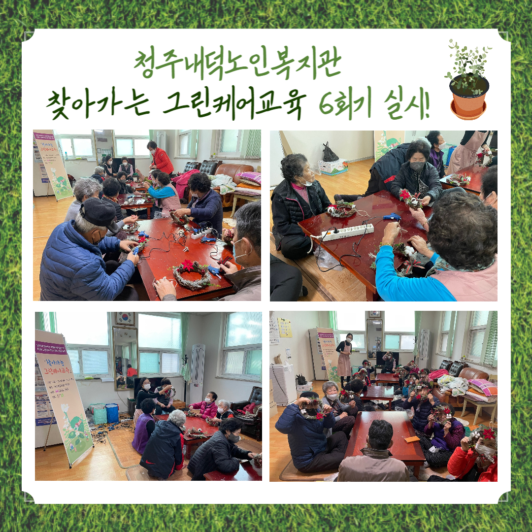 저희 복지관에서는 지난 11월 10일(목), 오후 14:00~15:00까지 내수읍 삼일아파트 경로당에서 찾아가는 그린케어교육을 실시하였습니다~!