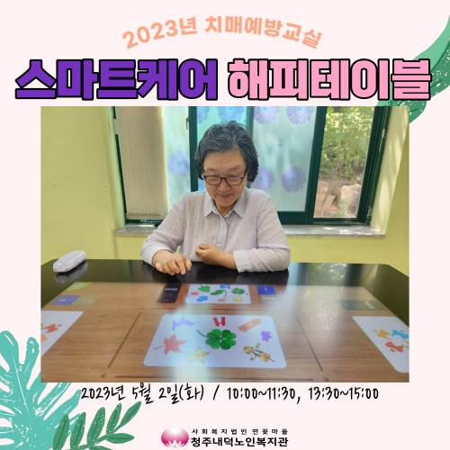 청주내덕노인복지관에서는 2023년 5월23일(화) 오전(10:00~11:30)과 오후(13:30~15:00)