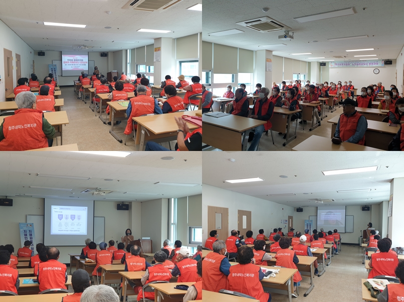 청주내덕노인복지관은 5월 30일 복지관 2층 배움방에서 10시부터 12시까지 9988 행복지키미 치매파트너 양성교육을 실시했습니다. 청원보건소 치매안심센터 손경남 주무관님과 함께 치매에 대하여 알아보는 시간이 되었습니다. 치매에 대한 올바른 이해, 치매환자와 가족을 이해하고 배려하는 법, 치매인식개선 및 예방체조 등 치매에 대해 알아보는 유익한 시간이 되었습니다! 이번 교육을 통해 9988 행복지키미 활동을 하며 수요자의 건강상태를 보다 적극적으로 살피고 적절한 대응을 할 수 있는 지식을 얻을 수 있는 시간이 되었습니다! 앞으로도 9988 행복지키미 참여자들을 위해 적극적인 교육과 지원을 할 수 있도록 노력하겠습니다!