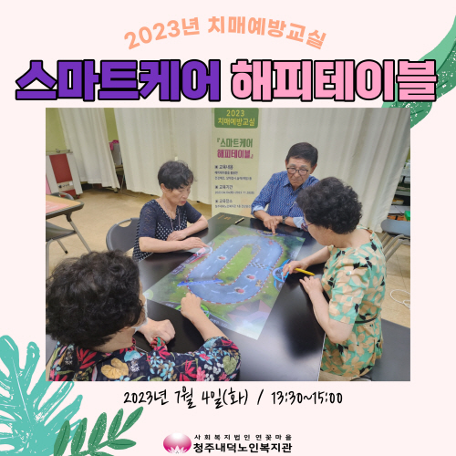 청주내덕노인복지관에서는 2023년 7월 4일(화) 오전(10:00~11:30)과 오후(13:30~15:00) 6월 참여자 그룹의 치매예방교실 스마트케어 해피테이블 마지막 회기가 진행되었습니다.