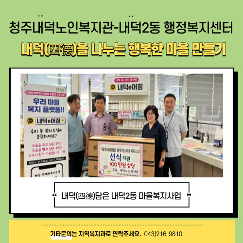 | 청주내덕노인복지관, 내덕2동 행정복지센터에 선식 지원 | |||