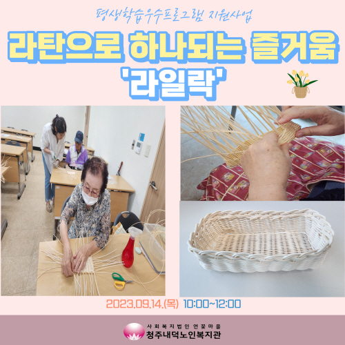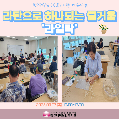 청주내덕노인복지관에서는 9월에도 여전히 배움에 대한 열정이 넘치는 참여자들과 함께 매주 목요일 10시부터 12시까지 평생학습우수프로그램지원사업인 라탄으로 하나되는 즐거움 '라일락'이 진행되었습니다.