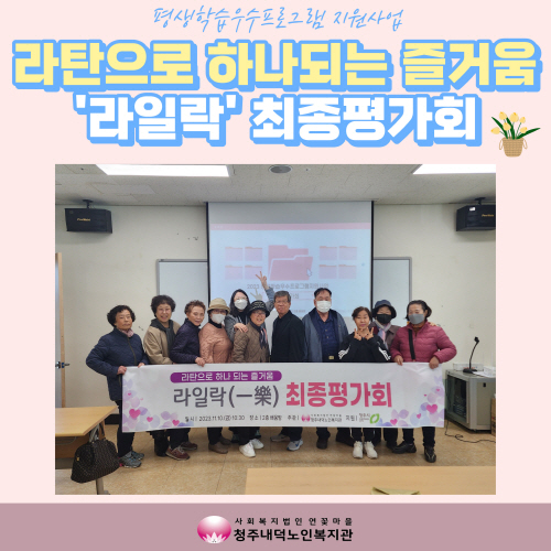 2023년 11월 10일(금) 10:30~11:30 청주내덕노인복지관 2층 배움방에서 2023년 평생학습우수프로그램지원사업인 라탄으로 하나되는 즐거움 '라일락' 최종평가회가 진행되었습니다.