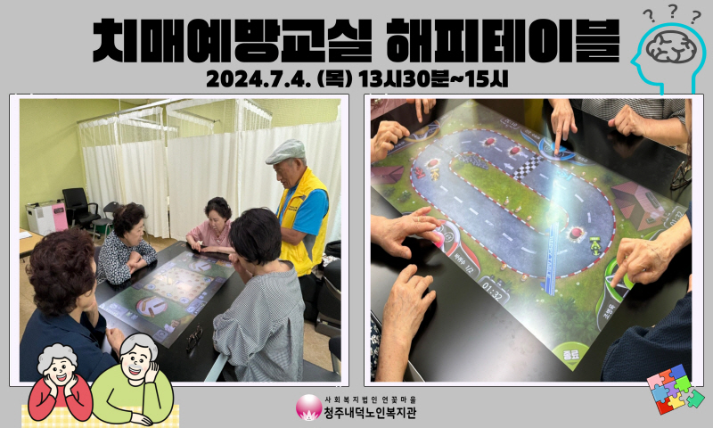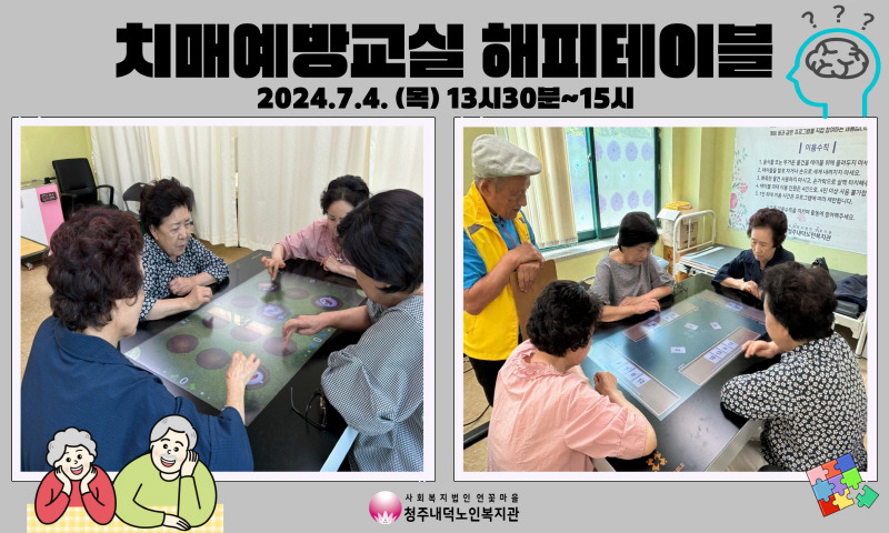 2024년 7월 4일(목) 부터 7월25일(목)까지 매주 목요일 오후 1시30분에 치매예방교실 해피테이블이 진행됩니다.