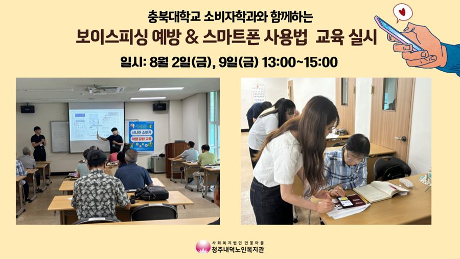 | 2024년 충북대학교 소비자학과와 함께하는 보이스피싱 예방 및 스마트폰 사용법 교육 실시 | |||