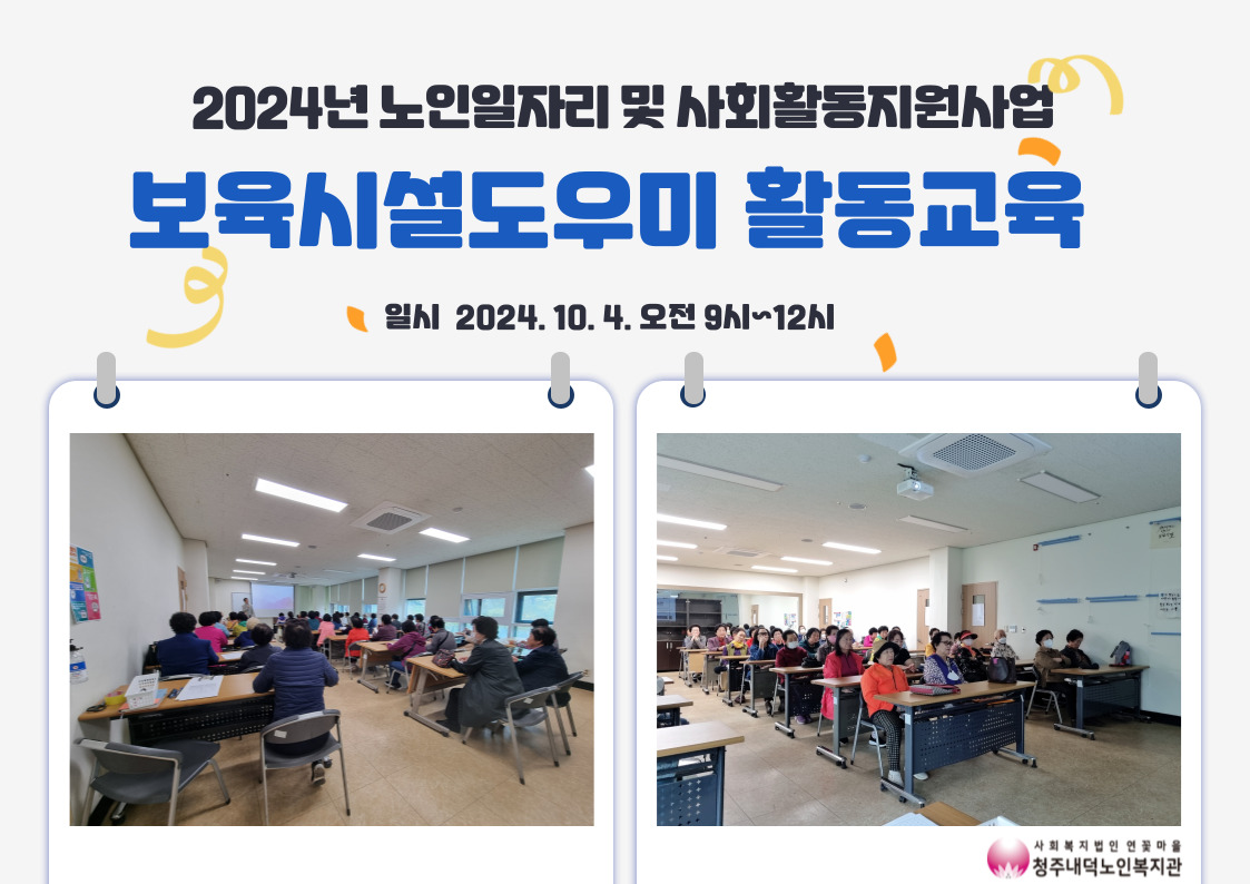 | 2024년 노인사회활동지원사업 보육시설도우미 활동교육 실시 | |||