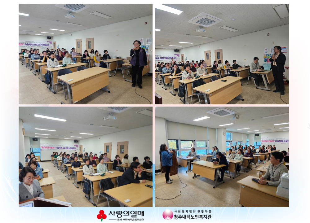 안녕하세요! 청주내덕노인복지관에서는 공동모금회 지원사업으로 진행되는 고독사 예방 프로그램 우리이웃지킴이 "마음똑똑"의 사례발표회를 성황리에 마쳤습니다. 이번 발표회에서는 취약계층 어르신을 위한 고독사 예방 활동을 하며 얻은 경험과 노하우를 우리이웃지킴이 선생님들이 서로 나누고, 함께 해결방안을 모색하는 뜻깊은 시간이었습니다. 특히, 사례 발표와 함께 전문가 슈퍼비전을 통해 각자의 어려움을 나누고, 실질적인 문제 해결 방법을 논의하여 앞으로의 활동이 더욱 효과적으로 진행될 수 있도록 했습니다. 앞으로도 어르신들의 고독사 예방을 위해 헌신하실 우리이웃지킴이 선생님들의 따뜻한 활동에 많은 응원 부탁드립니다!