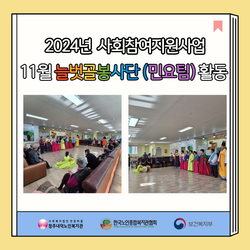 | 2024년 사회참여지원사업 늘벗골봉사단 (민요) 11월 공연활동 | |||