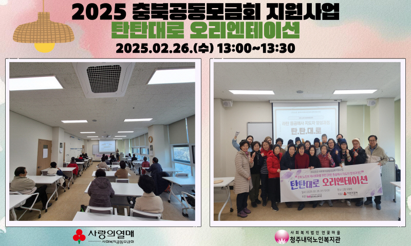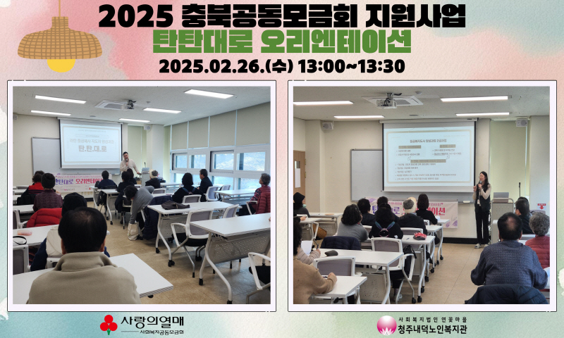 2025년 2월 26일(수) 오후1시부터 청주내덕노인복지관에서는 2층 으뜸방에서 공동모금회지원사업인 은퇴 노인의 재사회화를 위한 라탄 등공예사 지도자 양성과정"탄탄대로" 오리엔테이션이 진행되었습니다.