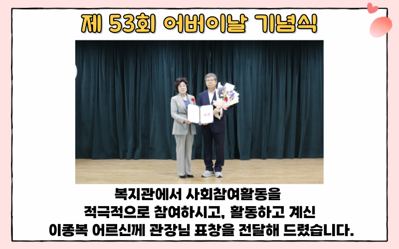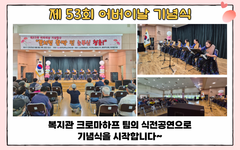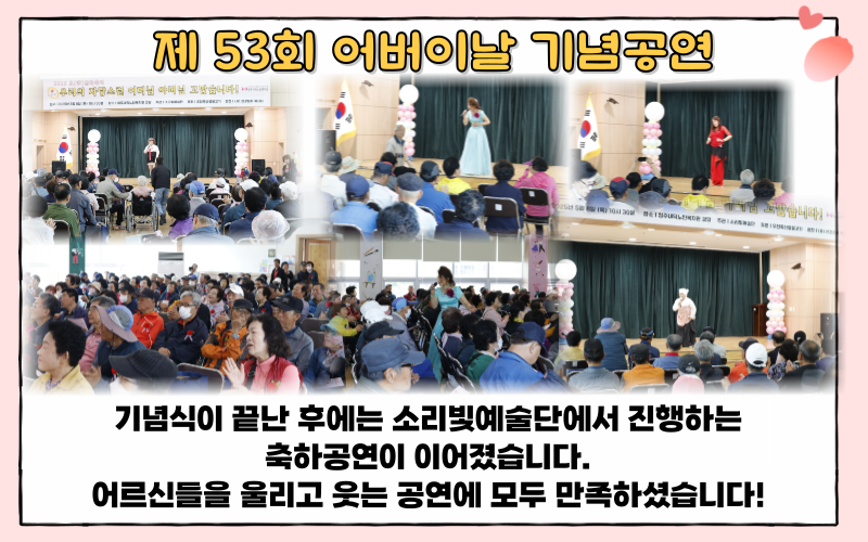 | 제 53회 어버이날 꽃처럼 활짝 핀 눈부신 청춘! 기념식 진행 | |||