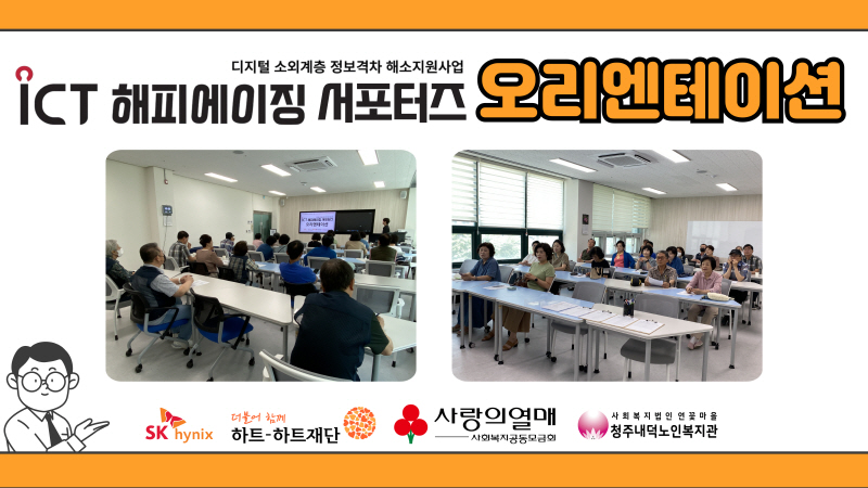 2025년 ICT해피에이징 서포터즈 사업 오리엔테이션을 6월 19일(목) 10:00~11:00 청주내덕복지관 1층 교육마당에서 진행하였습니다.