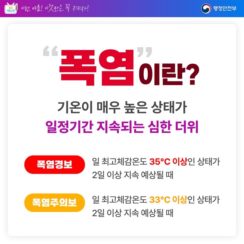 | [8월 건강정보]이번 여름! 이것만은 꼭 지키자! 폭염 행동요령 | |||