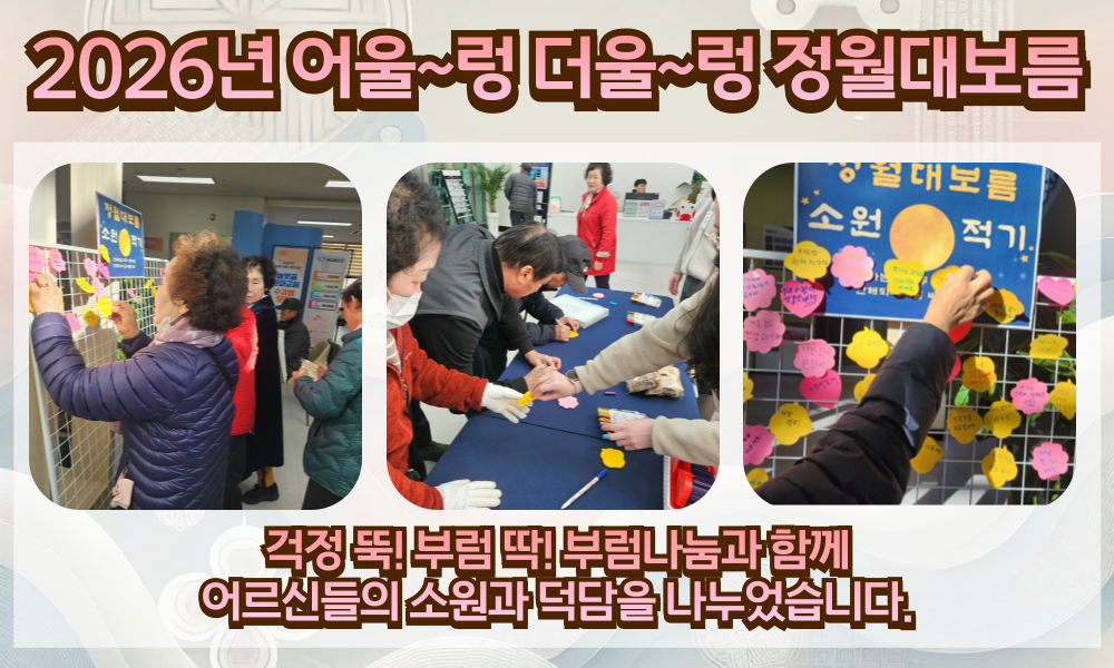 함께 모여 정을 나누고 소원과 덕담을 적어주신 어르신들의 따뜻한 소망들이 올 한 해 모두 둥근 보름달처럼 환하게 이루어지기를 진심으로 기원합니다.