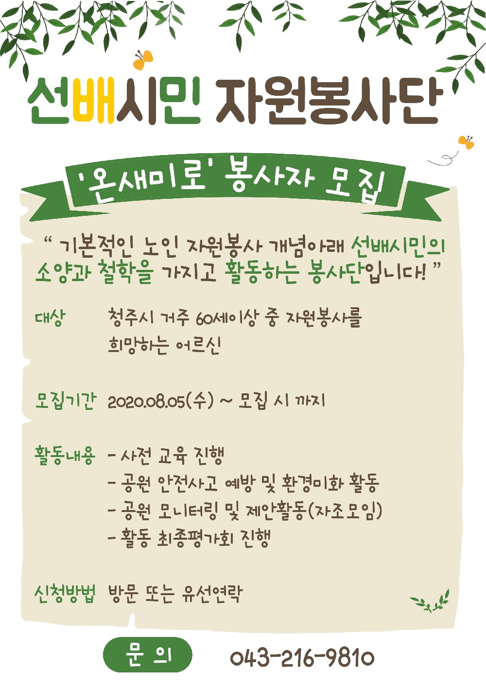 | 선배시민자원봉사단 "온새미로" 자원봉사자 모집 | |||