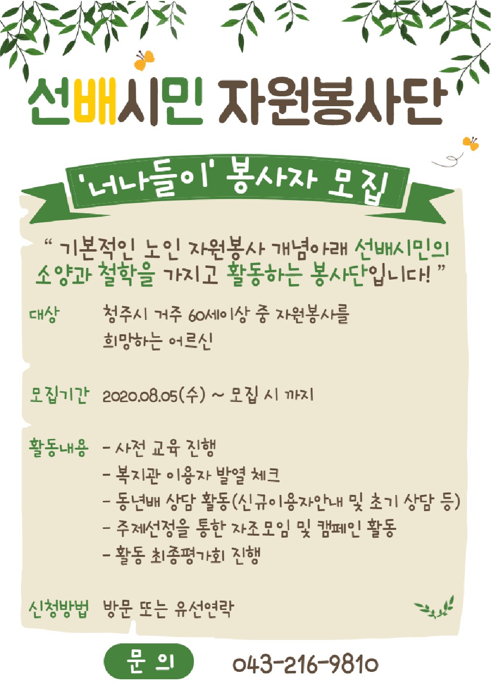 | 선배시민자원봉사단 "너나들이" 자원봉사자 모집 | |||