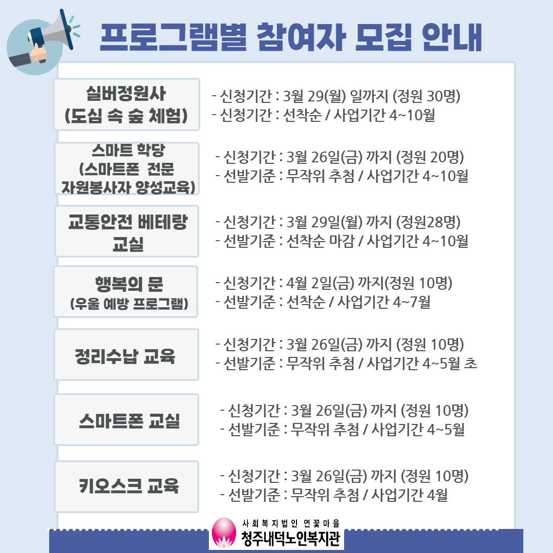 | [프로그램별 참여자 모집 안내] | |||