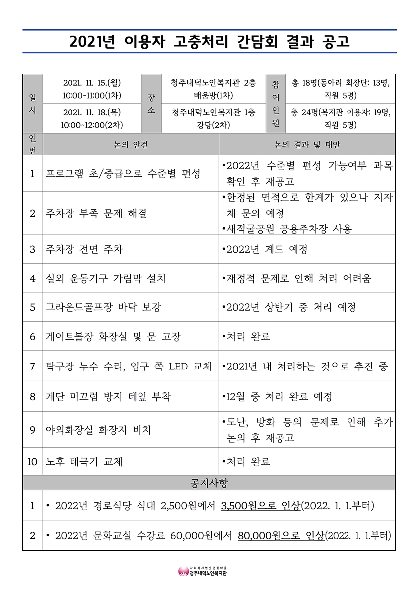 | 2021년 이용자 고충처리 및 간담회 결과 공고 | |||