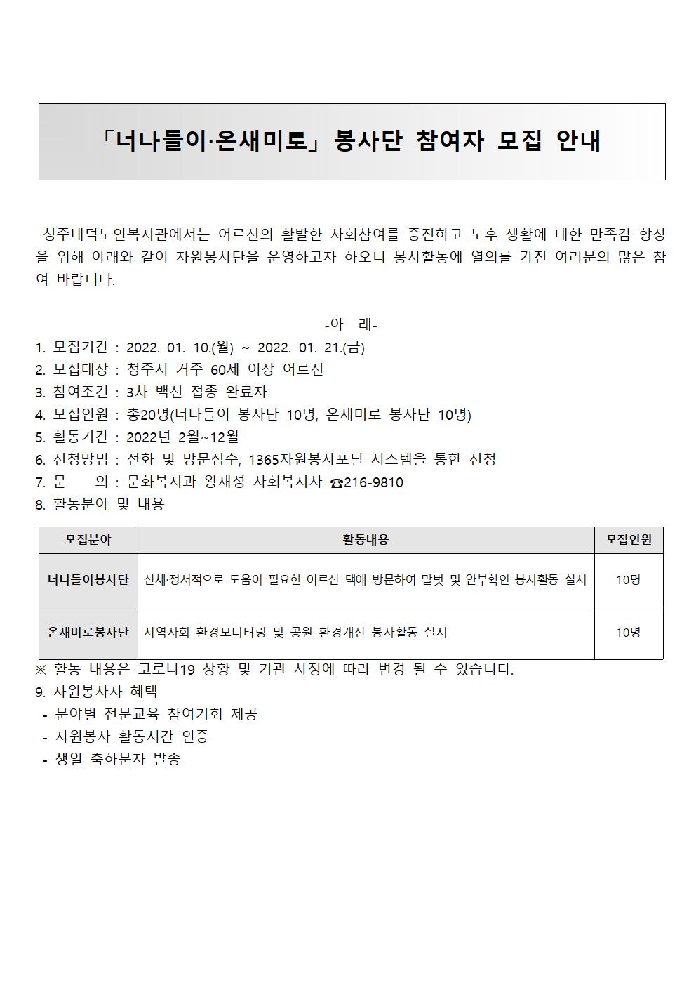 | 「너나들이‧온새미로」봉사단 자원봉사자 모집 공고 | |||