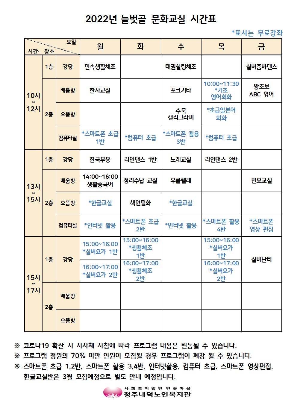 2022년 늘벗골 문화교실 참여자 모집 공고