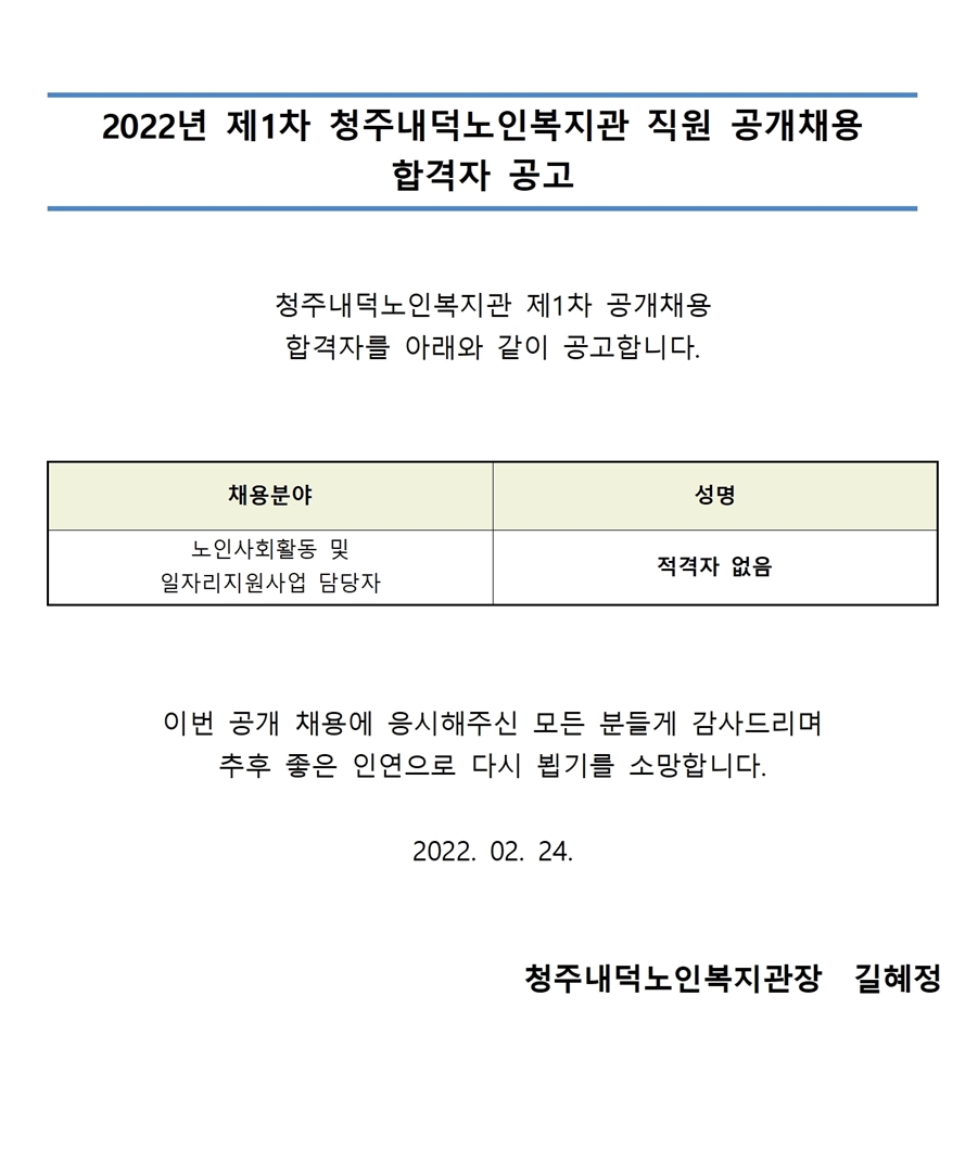 | 2022년 제1차 직원 공개채용 합격자 공고 | |||
