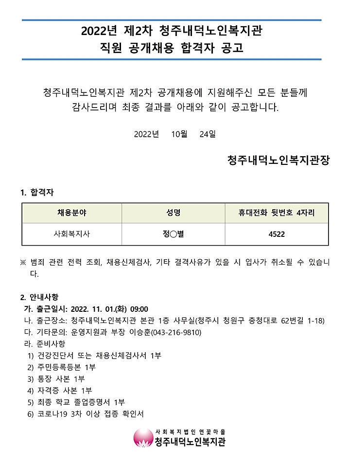 | 2022년 제2차 공개채용 합격자 공고 | |||