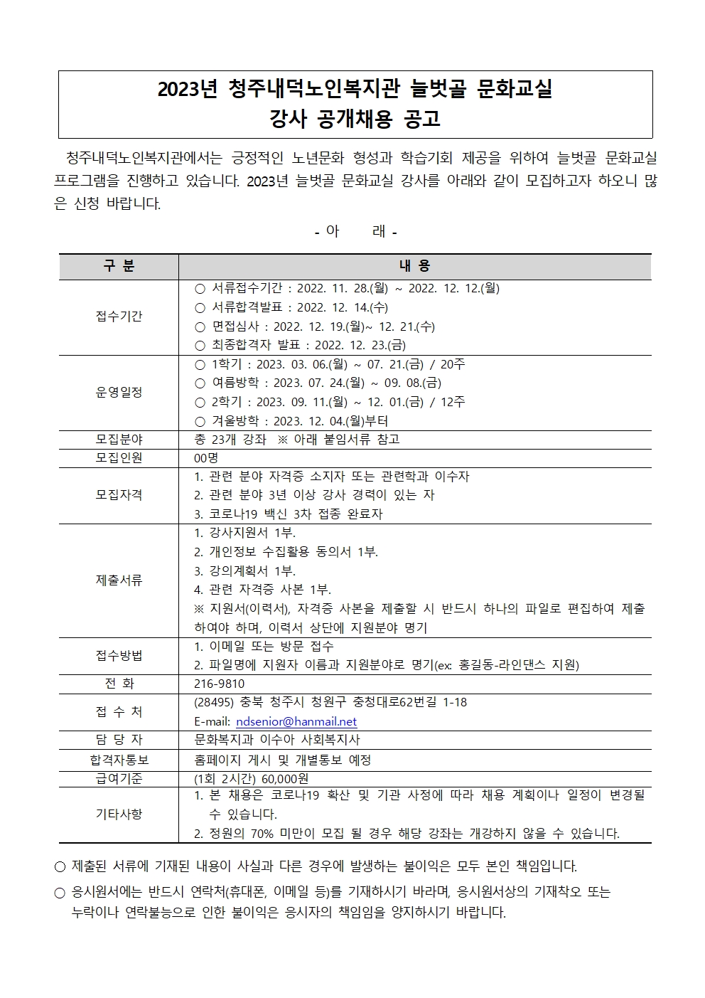 | [모집] 2023년 늘벗골 문화교실 강사 채용 공고(12.02. 수정) | |||