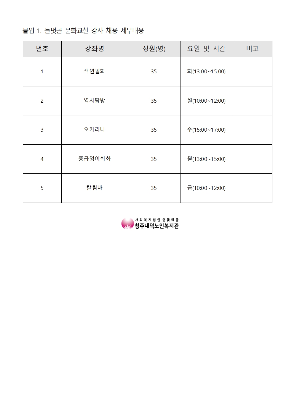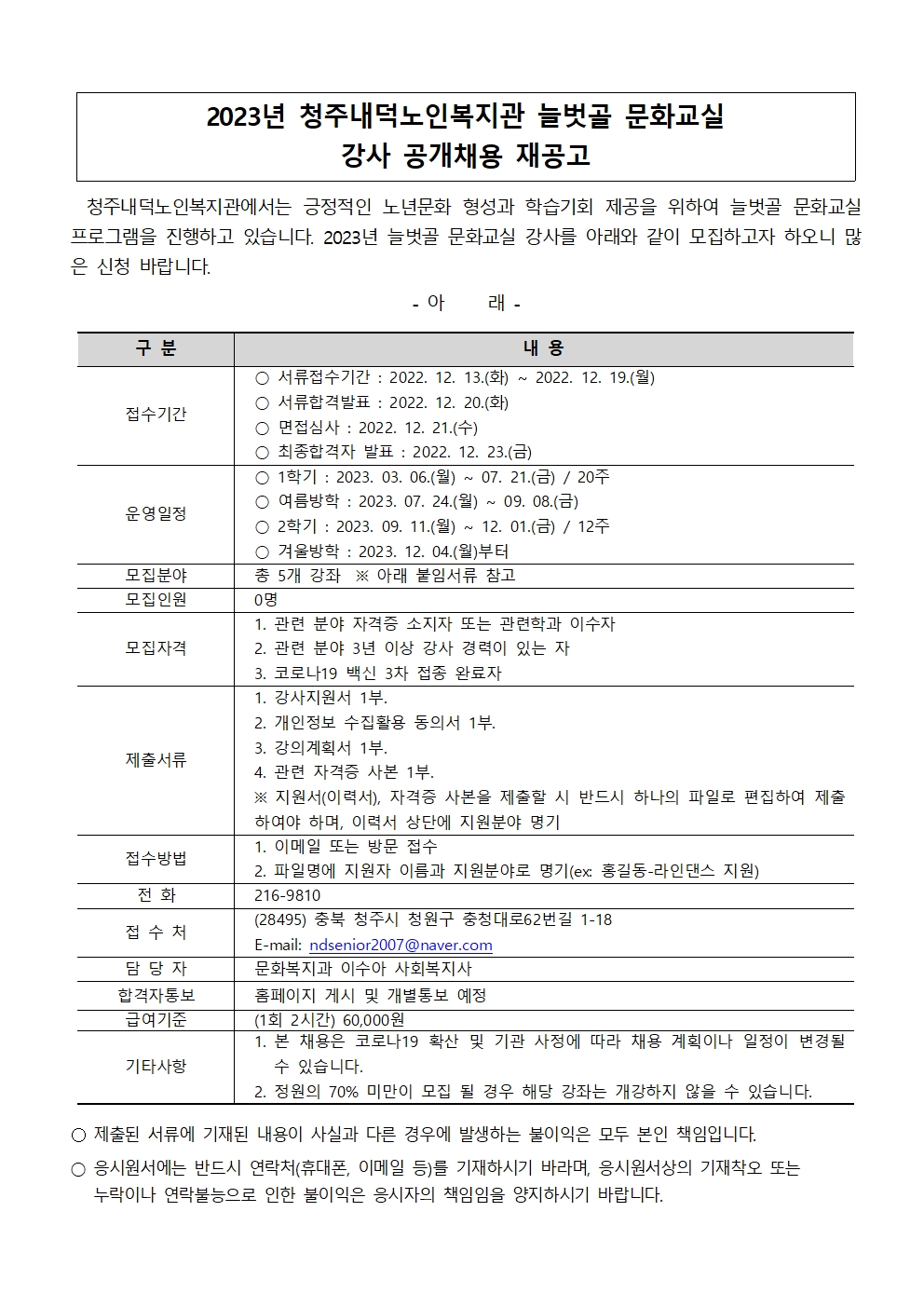 | [공고] 2023년 늘벗골 문화교실 강사채용 재공고 | |||
