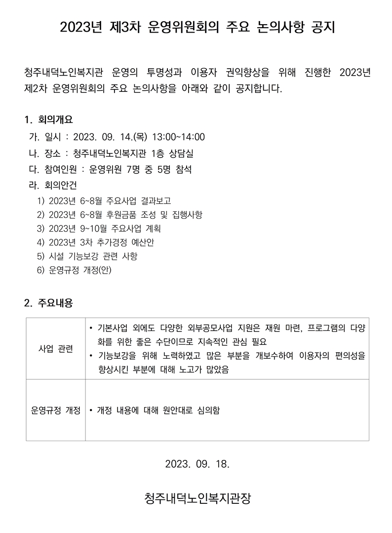 | 2023년 제3차 운영위원회 결과 공고 | |||
