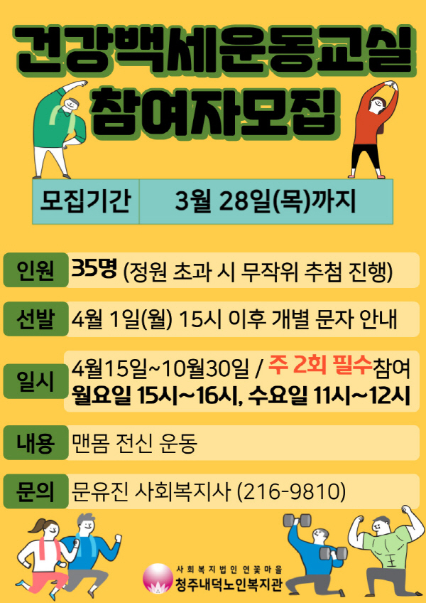 | [모집] 건강백세운동교실 참여자모집 | |||