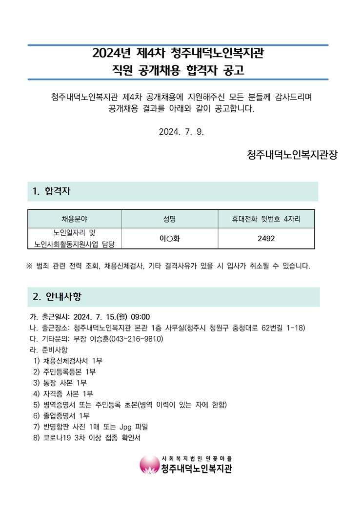 | 2024년 제4차 공개채용 합격자 공고 | |||