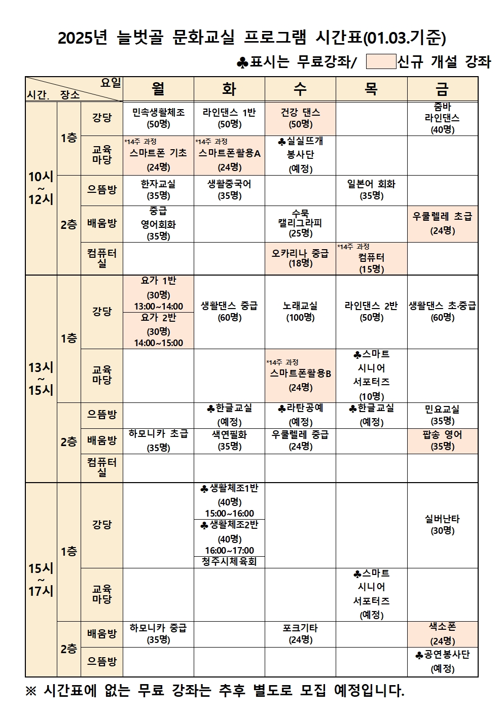 | [모집]2025년 늘벗골 문화교실 수강생 모집(01.03. 시간표 수정) | |||