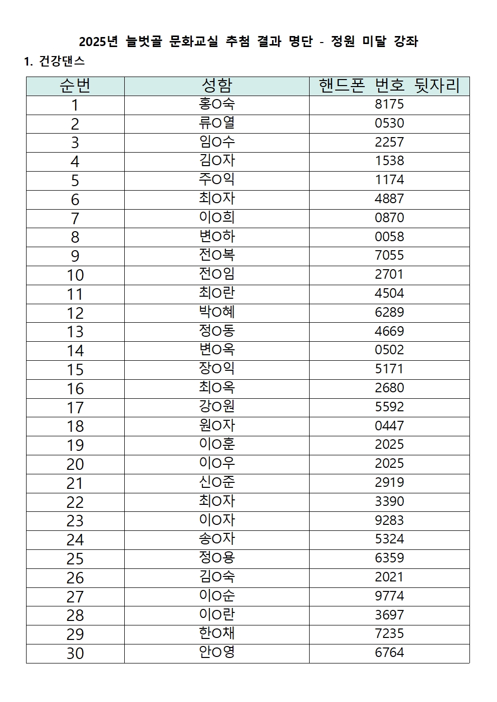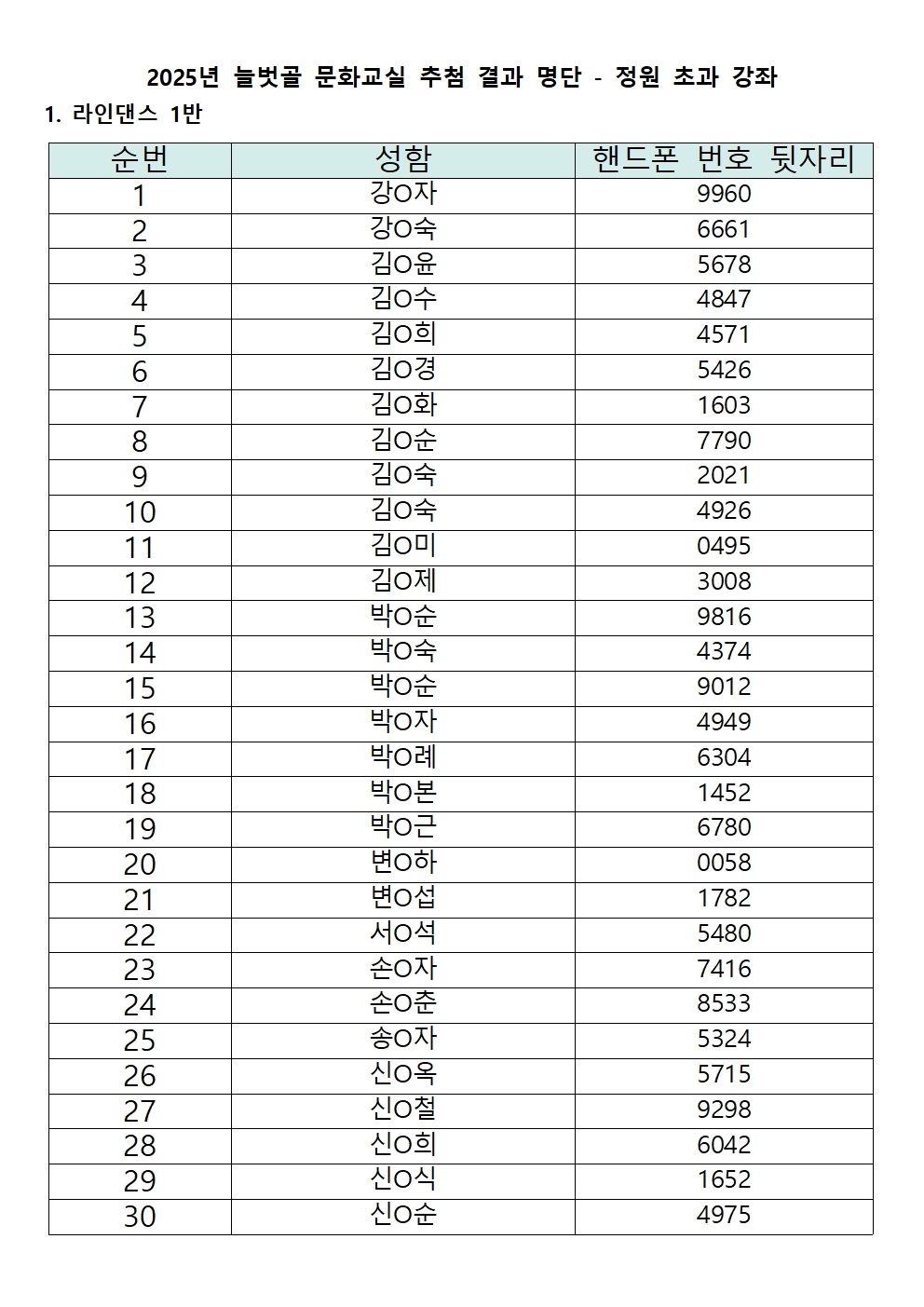 | 2025년 늘벗골 문화교실 추첨 결과 공지 | |||